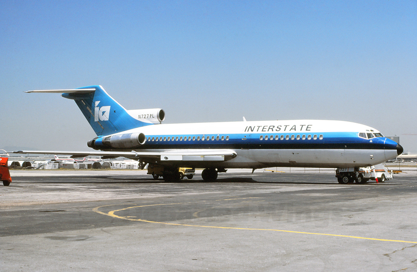 May 1983* Interstate Airlines was created in 1978, post the air cargo deregulation legislation to fly contract and charter cargo services. With a base of Willow Run Airport, the carrier started with Convair CV-580 turboprops, then initially purchased three Boeing 727 freighter conversions for jet cargo service for both DHL and Emery Worldwide contracts. Seen parked on the south cargo ramp is N727PL, a Boeing 727-22C, purchased by Interstate Airlines on November 10, 1981. |